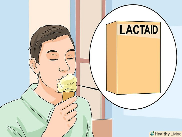 Приймайте харчові добавки з ферментом лактазою.багато людей з непереносимістю лактози люблять різні молочні продукти, наприклад морозиво. Якщо ви належите до їх числа, то немає необхідності повністю відмовлятися від молочних продуктів. Можна приймати харчові добавки з ферментами, які потрібні вашому організму для переробки молочних продуктів. Популярні такі засоби:[6]- Лактаза ензим