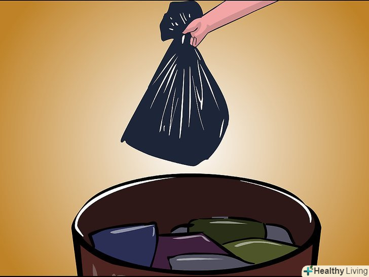 Як тільки ви усунете великі шматочки блювоти, на поверхні залишиться тільки лише волога пляма.міцно зав'яжіть пакет і покладіть його в сміттєвий бак.