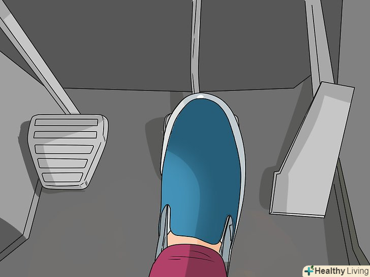 Вичавіть педаль зчеплення і утримуйте її в такому положенні.це хороший момент, щоб відчути різницю між педаллю зчеплення і педалями газу і гальма, а також повчитися повільно відпускати зчеплення.[4]- Якщо раніше ви їздили тільки з коробкою-автоматом, вам може бути незручно тиснути на педаль лівою ногою, але з часом ви до цього звикнете.