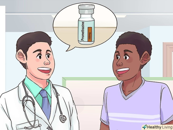 Обговоріть з лікарем можливість прийому препаратів від нудоти.порадьтеся з лікарем щодо того, щоб приймати "Ондансетрон", "Прометазин" або інші препарати від нудоти і блювоти. Незалежно від того, чи викликана нудота хіміотерапією або іншими причинами, ці кошти допоможуть вам зменшити її протягом дня.[24]- Обов'язково повідомте лікаря, які інші ліки та харчові добавки ви приймаєте, щоб він міг призначити відповідний курс лікування. Не приймайте одночасно кілька препаратів від нудоти, так як це може привести до серйозних побічних ефектів.