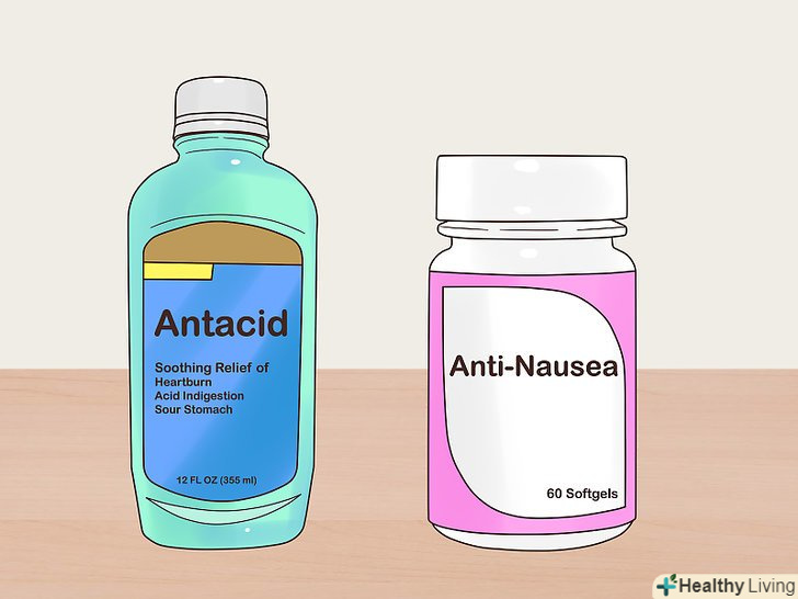 Прийміть антацидний засіб або препарат від нудоти.ці ліки відпускаються без рецепта і допомагають полегшити нудоту, проте їх дія проявляється через 30 і більше хвилин. Спробуйте прийняти вісмуту субсаліцилат (він є активним інгредієнтом таких препаратів, як "Пепто-Бісмол" і "Де-Нол"). Можна використовувати і Дименгідринат, проте він найбільш ефективний в тому випадку, якщо приймати його за 30-60 хвилин до можливого нападу нудоти або морської хвороби.- Якщо ви як і раніше відчуваєте нудоту, лікар може виписати Рецептурні препарати.