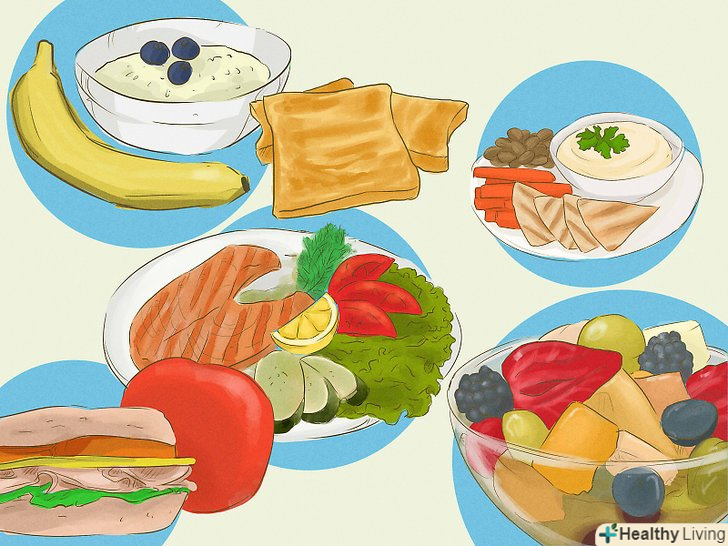 Їжте невеликими порціями протягом усього дня.потроху їжте 4-5 разів на день через 2-3 години — в цьому випадку ваш шлунок буде легше перетравлювати помірну кількість їжі без особливої напруги. Тим самим ви обмежите вироблення шлункового соку і допоможете шлунку впоратися з гастритом. Крім того, невеликі порції (і вживання меншої кількості їжі в цілому) зменшать біль (або печію) при гастриті.[12]- Не їжте за дві години до сну, інакше ваш шлунок буде виробляти більше кислоти, щоб переварити їжу вночі.