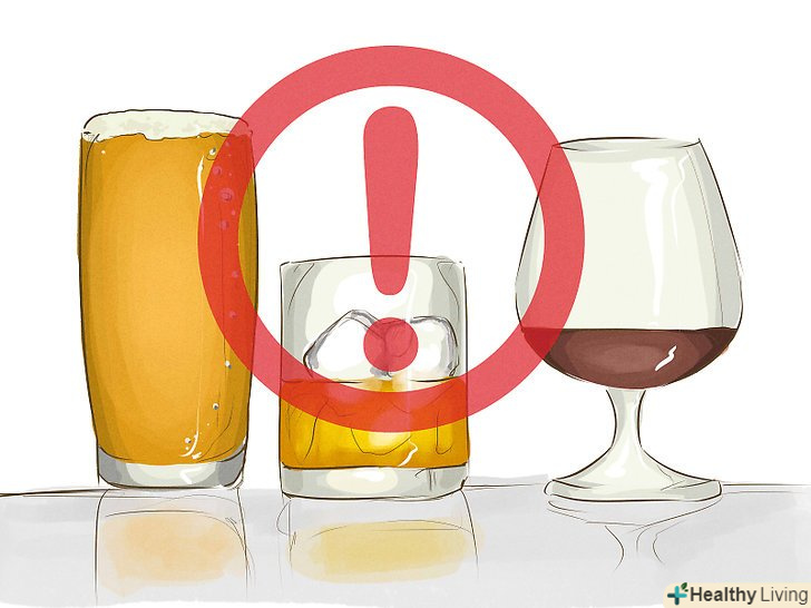 Вживайте не більше 1-2 порцій спиртного в день.надмірна кількість алкоголю руйнує слизову оболонку шлунка і збільшує вироблення шлункового соку.[6] жінкам рекомендується обмежити споживання алкоголю однією, а чоловікам-двома порціями в день. Крім того, можна розводити міцні напої льодом або газованою водою, щоб знизити їх концентрацію при попаданні в шлунок.- Ніколи не пийте спиртне натщесерце, так як це підвищує ризик виразки шлунка.