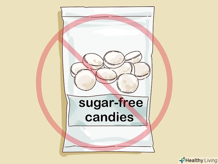 Уникайте штучних добавок.штучні підсолоджувачі в цукерках без цукру можуть викликати гази. Читайте етикетку на солодощах і остерігайтеся таких підсолоджувачів, як сорбіт, маніт і ксиліт. Всі вони можуть збільшити вироблення кишкових газів.[12]