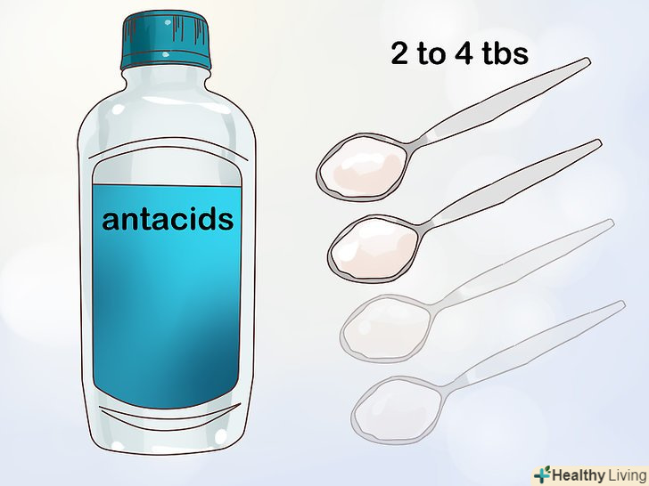 Спробуйте нерецептурні препарати.якщо гази не призводять до інших проблем зі здоров'ям, то їх можна вгамувати безрецептурними препаратами. Ряд медичних засобів, які можна знайти в аптеці, допоможуть вам усунути або хоча б знизити підвищене газоутворення.[14]- Прийміть 2-4 столові ложки антациду приблизно через півгодини після їди, щоб вгамувати метеоризм.