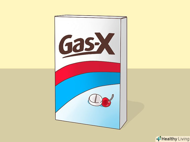 Спробуйте засоби з симетиконом.якщо у вас підвищилося газоутворення, спробуйте прийняти безрецептурний засіб для зменшення кількості газів. Такі засоби з симетиконом, як» Еспумізан«,» Еспузін «і» Колікід " допоможуть зруйнувати бульбашки кишкового газу. Хоча ефективність симетикону не була добре вивчена, деякі відзначають, що препарати, основним компонентом яких він є, допомогли зменшити кількість газів.[5]
