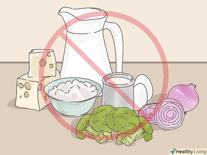 Не їжте фрукти і овочі, які сприяють утворенню газів.коли фрукти та овочі з розчинними волокнами руйнуються в організмі, це призводить до підвищеного газоутворення. Щоб зменшити вироблення газів, намагайтеся не їсти наступні фрукти і овочі:[10]- Цибуля;