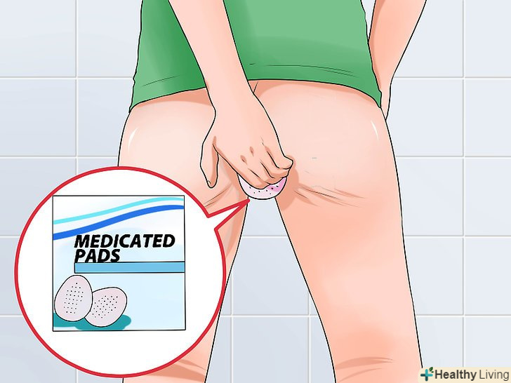 Використовуйте лікувальні ватні диски.полегшуйте свербіж за допомогою просочених ліками ватних дисків, які можна придбати в аптеках. Акуратно промокніть вологим диском свербляче місце. Не тріть при цьому хвору ділянку. Повторюйте дану процедуру шість разів на день.- Використовуйте ватяні диски при відвідуванні Вбиральні. Спочатку очищайте область заднього проходу і лише потім користуйтеся ватним диском. Викидайте використані ватяні диски.[6]