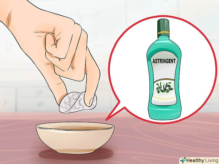 Використовуйте в'яжучі рослинні засоби.такі засоби, наприклад гамамеліс, допомагають вгамувати свербіж шкіри. Гамамеліс має в'яжучі властивості і допомагає зняти набряк і свербіж. Змочіть у в'яжучому засобі ватяну кульку і прикладіть його до вимитої області заднього проходу після відвідування вбиральні. Повторюйте це в міру необхідності, хоча б 4-5 разів на день.[9]- Обов'язково очищайте область заднього проходу і лише потім використовуйте в'яжучий засіб.