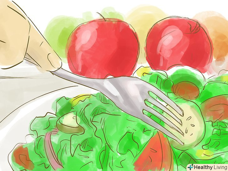Не переїдайте.великі порції перевантажують травну систему. Їжте 5-6 разів на день невеликими порціями замість рясної їжі 3 рази на день.[11]- їжте не поспішаючи. Ретельно пережовуючи їжу, ви полегшите травлення і уникнете переїдання.[12]