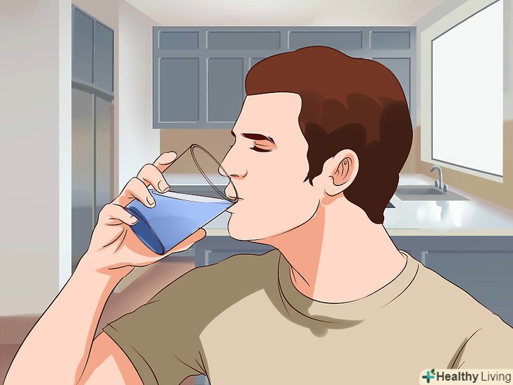 Пийте достатню кількість рідини.завдяки цьому, шлунково-кишковий тракт буде працювати належним чином. Вода допомагає пом'якшити стілець і попередити появу такої проблеми, як запор. Крім того, достатній питний режим сприяє більш ефективному поглинанню поживних речовин з продуктів, які ви вживаєте.[13]- Носіть з собою весь час пляшку з водою. Коли ваша пляшка стає порожньою, поповнюйте її запаси. Пийте 1-2 літри рідини щодня.[14]