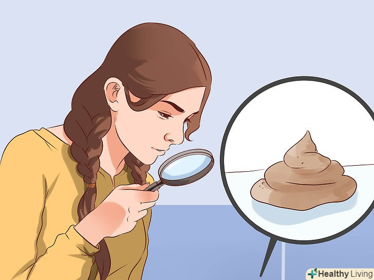 Зверніть увагу на білий, сірий або світлий кольори калу.головну роль в фарбуванні калу грає жовч. Знебарвлений стілець свідчить про відсутність надходження жовчі в кишечник. Це говорить про блокування жовчних проток, що є серйозною проблемою, необхідної негайного звернення до лікаря. Якщо ви помітили появу білого або світло-жовтого калу, обов'язково проконсультуйтеся з лікарем.[2]
