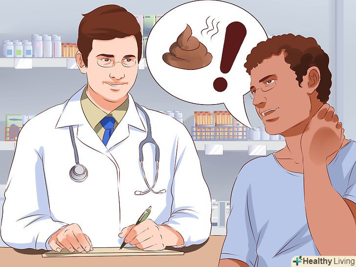 Проконсультуйтеся з лікарем, якщо ця проблема викликає у вас занепокоєння.незалежно від причини, якщо ви турбуєтеся про колір свого стільця або вас турбують зміни у вашому травленні, зверніться до лікаря. Лікар, провівши необхідне обстеження, зможе або призначити необхідне лікування, або заспокоїти вас, сказавши, що зі здоров'ям у вас все в порядку.[11]- Навіть якщо ви відчуваєте збентеження, говорячи про цю делікатну тему, дуже важливо проконсультуватися з лікарем, якщо ви переживаєте з цього приводу. Завжди краще перестрахуватися і пройти необхідне обстеження.
