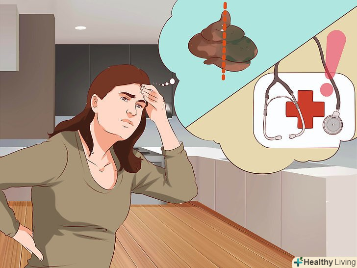 Негайно зверніться за медичною допомогою, якщо ваш стілець має яскраво-червоний або чорний колір.навіть якщо ви думаєте, що ці зміни пов'язані з прийомом лікарських препаратів або споживанням певних продуктів, краще звернутися до лікаря, так як такий колір калу може вказувати на шлунково-кишкова кровотеча. Якщо ви помічаєте кров в калі або у вас виникає сильна кровотеча при дефекації, зверніться до лікаря якомога швидше.[9]- Якщо ваш стілець придбав яскраво-червоний або чорний відтінок, а ви недавно приймали антидіарейні препарати, їли продукти, які здатні забарвити кал в червоний колір або почали прийом нових ліків, проконсультуйтеся з лікарем, щоб переконатися, що зміни в кольорі стільця не є ознакою серйозного захворювання.