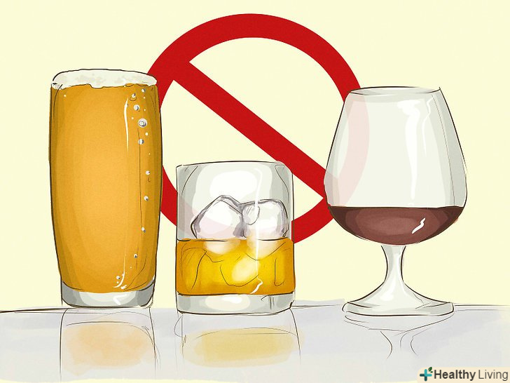 Утримуйтеся від спиртних напоїв.намагайтеся уникати алкогольних напоїв, таких як пиво, вино і міцні напої, так як вони сприяють зневодненню організму і можуть викликати запор. При запорах в прямій кишці накопичуються щільно упаковані маси перевареної їжі. Крім того, алкоголь здатний пригнічувати перистальтику кишечника і порушувати його правильну роботу, що також може викликати запор.[5][6]