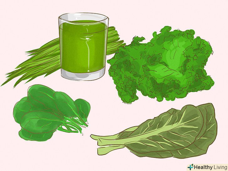 Їжте більше зелених листових овочів.крім харчових волокон, в зелені містяться поживні речовини, які зміцнюють кишечник. Намагайтеся з'їдати хоча б трохи зелених листових овочів при кожному основному прийомі їжі або перекусі.[3]- До корисних зелених листових овочів відносяться молоді пагони люцерни, проросла пшениця, брюссельська, листова і Городня капуста, шпинат, горох, пагони ячменю.