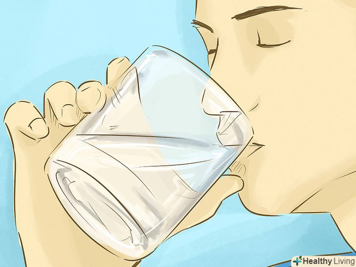 Пийте більше води.для нормальної роботи, очищення від бактерій і виведення відходів прямій кишці потрібна вода. Дорослим чоловікам слід випивати щонайменше 3,2, а жінкам — 2,2 літра води в день. Можна пити і більше, якщо ви інтенсивно займаєтеся спортом або проживаєте в жаркому і сухому кліматі.[4]- Заведіть звичку постійно носити з собою пляшку з водою, щоб пити протягом усього дня. Можна також використовувати пам'ятки або сигнал в мобільному телефоні, щоб не забувати випивати хоча б 2,2 літра води щодня.