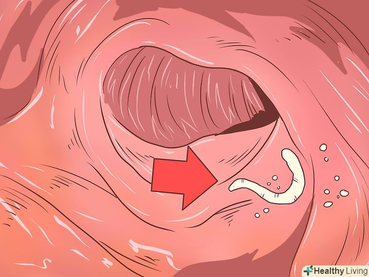 Придивіться до безпосередніх ознак ентеробіозу.перераховані нижче симптоми можна спостерігати неозброєним оком.[6]- Іноді гостриків можна розгледіти в області заднього проходу, особливо через 2-3 години після того, як заражена людина заснула. Використовуйте для цього ліхтарик.