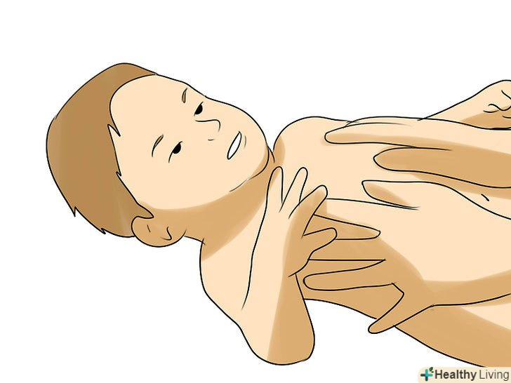 Злегка масажуйте животик малюка.фізичні навантаження (наприклад, ходьба) можуть допомогти процесу травлення як у дорослих, так і у дітей. Так як діти не можуть займатися фізичними вправами, можна ніжно (!!!) і повільно втирати підігрітий лосьйон для дитячої шкіри (або соняшникову олію) в животик малюка у напрямку годинникової стрілки, щоб гази просувалися по кишках, а не завдавали біль і дискомфорт дитині. Повільний рух і тепло руки заспокоять дитину. Говоріть з дитиною м'яким голосом, роблячи такий масаж.