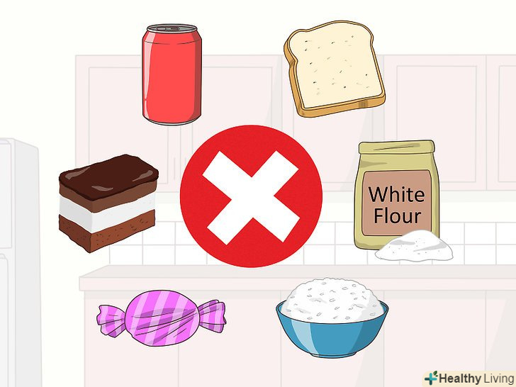 Обмежте споживання очищених вуглеводів і доданого цукру.такі вуглеводи містяться в продуктах з очищених злаків (білому хлібі, рисі і білому борошні). Фрукти та овочі містять корисний натуральний цукор, однак слід уникати продуктів з доданим цукром, таких як цукерки, випічка та солодкі напої.[16]- Вважається, що очищені вуглеводи і доданий цукор підвищують ризик утворення жовчних каменів.