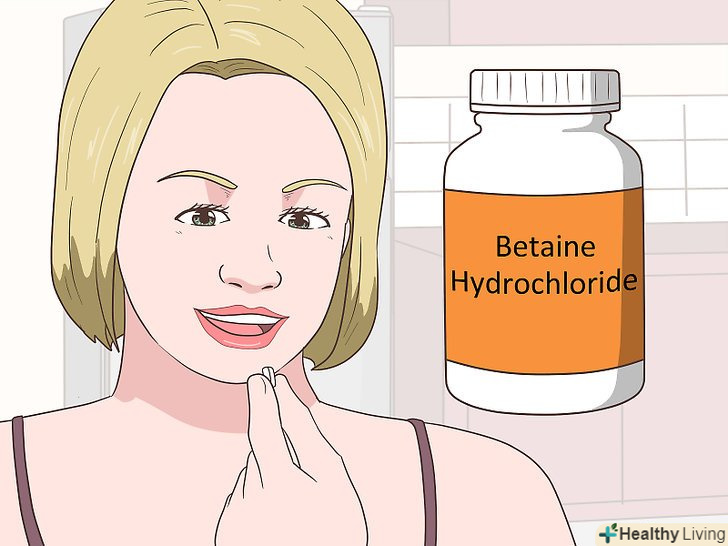 - Дізнайтеся у лікаря, чи підходить вам гідрохлорид бетаїну. Цей засіб не слід приймати при печії, кислотному рефлюксі, гастриті або виразці шлунка. Припиніть приймати гідрохлорид бетаїну, якщо відчуєте печію.[11]