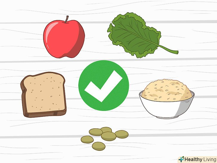 Їжте більше продуктів, багатих харчовими волокнами, таких як фрукти, овочі та цільнозернові продукти.харчові волокна допомагають знизити вміст холестерину в жовчі і тим самим запобігти утворенню каменів в жовчному міхурі. Хорошим джерелом харчових волокон є сирі фрукти і овочі (особливо зелені листові), бобові, коричневий рис, хліб, макарони і каші з цільних зерен.[13]- Якщо ви недавно перенесли операцію на жовчному міхурі або дотримуєтеся спеціальної дієти, порадьтеся з лікарем щодо того, яка кількість харчових волокон безпечно для вас.[14]
