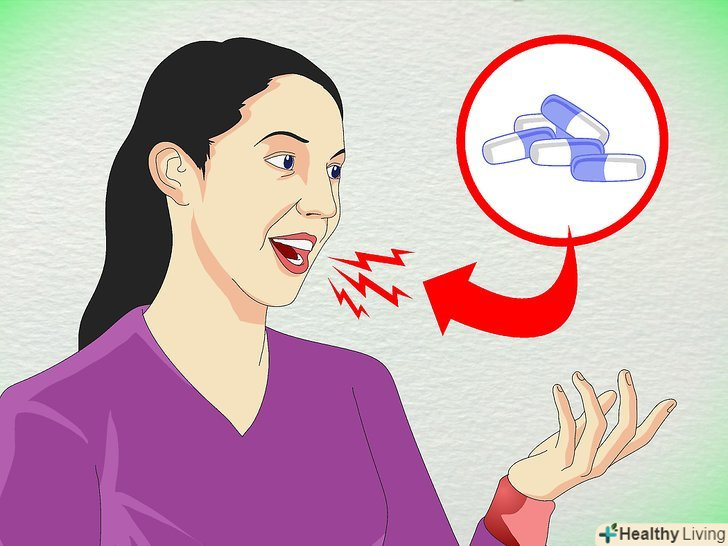 Перевірте список побічних ефектів тих препаратів, які ви приймаєте.на жаль, деякі лікарські препарати можуть призводити до неприємного запаху з рота. Зазвичай такий побічний ефект, як "сухість слизової оболонки порожнини рота" призводить до дисбалансу бактерій в ротовій порожнині, що, в свою чергу, призводить до неприємного запаху. Якщо проблема набула серйозного характеру, проконсультуйтеся з лікарем про можливість замінити лікарський препарат на альтернативний.- В основному призводять до неприємного запаху з рота лікарські препарати для лікування депресії, занепокоєння, алергічних реакцій, акне і ожиріння.[15]