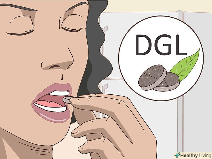 Приймайте деглицирризованный корінь солодки або кору в'яза іржавого, щоб контролювати кислотність шлунка.від печії допомагають і деякі інші рослинні засоби. Наприклад, деглицирризованний корінь солодки допомагає при хворобах шлунка і підвищеної кислотності.[16] він продається у вигляді жувальних таблеток, проте врахуйте, що вони мають специфічний смак, до якого потрібно звикнути. Стандартна доза деглицирризованного кореня солодки становить 2-3 таблетки раз в 4-6 годин.- Приймайте лише деглицирризованний, а не звичайний корінь солодки, так як останній може підвищувати артеріальний тиск.
