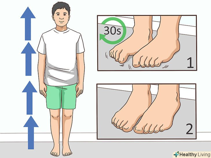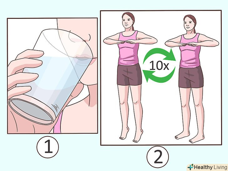 Щоранку виконуйте 10 вправ, які допоможуть впоратися з печією.у хіропрактиці для лікування грижі стравоходу використовують вправу, яке допомагає також при печії. Випийте 180-240 мілілітрів злегка теплої води, як тільки встанете вранці. Стоячи витягніть руки в сторони, зігніть їх в ліктях і піднесіть до грудей. Підніміться на носках, потім опустіться на п'яти. Виконайте це 10 разів.- Після того як ви підніметеся на носках і опуститеся на п'яти 10 разів, робіть короткі, швидкі і неглибокі вдихи протягом 15 секунд, тримаючи руки піднятими. Виконуйте дану вправу щоранку, поки не відчуєте поліпшення.