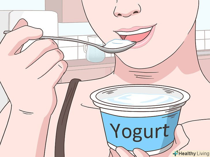 Вживайте пробіотики, щоб підтримувати здоров'я кишечника.Пробіотики являють собою суміш різних бактерій, які мешкають в кишечнику, таких як грибок Saccharomyces boulardii , культури молочнокислих бактерій і біфідобактерії. Ці живуть в кишечнику корисні бактерії покращують загальне самопочуття і зміцнюють здоров'я шлунка.[10]- Пробіотики легко отримати разом з йогуртами, які містять активні культури. Можна також приймати біологічно активні добавки, але при цьому обов'язково дотримуйтесь вказівок виробника. Пошукайте хороші добавки з пробіотиками в аптеці.