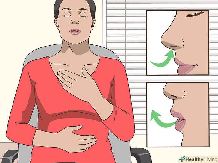 Виконуйте дихальні вправи, щоб зняти стрес.вважається, що стрес, особливо хронічний, сприяє кислотному рефлюксу.[22] щоб полегшити печію, необхідно щодня знижувати рівень стресу. Сядьте в спокійній обстановці і глибоко подихайте протягом декількох хвилин, щоб розслабитися. Повільно вдихніть повітря носом, потім видихніть через рот. Видих повинен тривати в два рази довше, ніж вдих. Виконуйте цю вправу якомога частіше.- Якщо вам складно простежити за часом, вважайте про себе. Рахуйте до 6-8 при вдиху і до 12-16 при видиху.