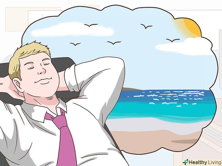 Візьміть уявний відпустку.Неважливо де ви знаходитесь: навіть якщо ви не можете відправитися в справжню відпустку, уявний відпочинок допоможе вам розвіятися.[25] зробіть кілька глибоких вдихів, розслабтеся і закрийте очі. Уявіть найпрекрасніше місце, в якому ви коли-небудь були, або таке, де ви хотіли б відпочити.- Постарайтеся якомога виразніше уявити собі певне місце: відчуєте характерні запахи і легкий вітерець, прислухайтеся до звуків. Влаштовуйте собі такий уявний відпочинок кожен день.[26]