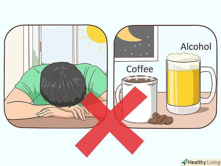 Дотримуйтесь гігієни сну.це має на увазі правильний розпорядок дня і звички сну.[28] фахівці Національного фонду сну (США) рекомендують не спати вдень, так як денний сон порушує нормальний цикл сну і неспання. Намагайтеся також не вживати незадовго до сну стимулятори, до яких відносяться кофеїн, нікотин і алкоголь. Іноді алкоголь допомагає заснути, проте він може порушити подальший сон, коли організм приступає до його переробки.- Займайтеся інтенсивними фізичними вправами лише вранці або вдень, але не ввечері. Вечорами спробуйте виконувати розслаблюючі вправи, наприклад розтяжки або вправи йоги, щоб краще спати вночі.