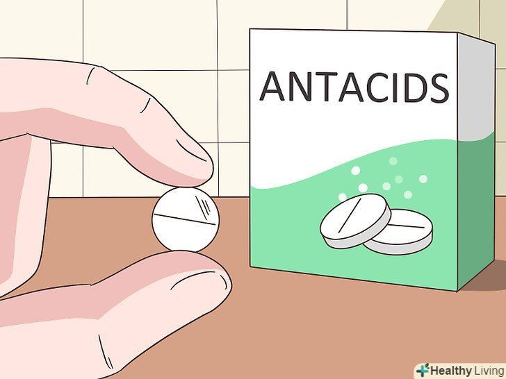 Приймайте антацидні препарати, щоб нейтралізувати шлунковий сік.у продажу є різні відпускаються без рецепта кошти, які допомагають впоратися з печією. Незважаючи на велику кількість виробників і марок, зазвичай всі ці кошти мають схожу дію. Антацидні препарати допомагають нейтралізувати кислоту в шлунку. Зазвичай їх приймають від печії до 2 тижнів.[30][31]- Якщо вам потрібно приймати антацидні препарати довше цього терміну, краще проконсультуватися з лікарем, оскільки тривале використання антацидів може порушити мінеральний баланс, негативно вплинути на нирки і викликати діарею.