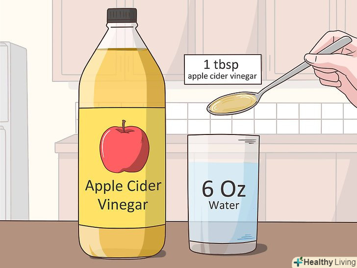 Спробуйте пити розведений водою яблучний оцет.хоча це може здатися дивним, для позбавлення від печії можна використовувати яблучний оцет. Розведіть 1 столову ложку (15 мілілітрів) органічного яблучного оцту в 180 мілілітрах води. Як слід перемішайте і випийте. Можна використовувати і звичайний яблучний оцет, проте він повинен бути саме яблучним.- Є не так вже й багато наукових доказів того, що яблучний оцет дійсно допомагає впоратися з кислотним рефлюксом, в той час як в занадто великих кількостях він може посилити проблему.[20] використовуйте даний засіб з обережністю і відмовтеся від нього, якщо воно не дасть результатів або посилить симптоми.