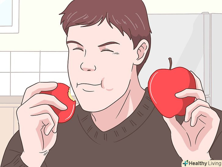 Їжте яблука-їх шкірка є натуральним антацидом.як свідчить старовинна приказка:»одне яблуко в день – і лікар не потрібен". Яблука дуже корисні і допомагають впоратися з підвищеною кислотністю. Що міститься в шкірці яблук пектин є натуральним антацидом, а також володіє іншими корисними властивостями (знижує ризик хвороб серця і сприяє нормальній роботі жовчного міхура).[12]- Якщо вам не подобається їсти яблука просто так, спробуйте додавати їх в салати або смузі.
