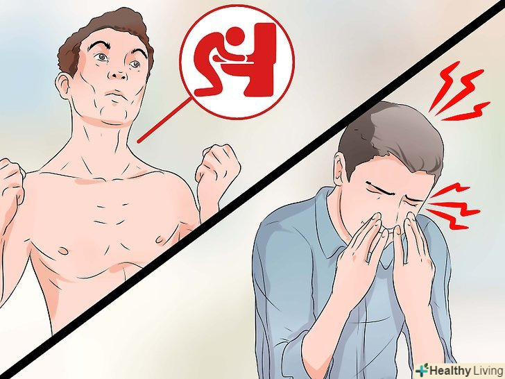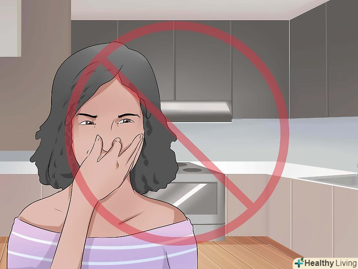 Тримайтеся подалі від неприємних запахів.часто саме запахи провокують напад нудоти. Нудоту і блювоту може викликати навіть запах певних страв, які хтось готує або їсть.[17]- Якщо у вас вже була блювота, і ви знову відчуваєте нудоту, не наближайтеся до кухні, де готують або приймають їжу. Уникайте будь-яких неприємних запахів, наприклад, запаху туалету або чиїхось блювотних мас (а також їх виду).