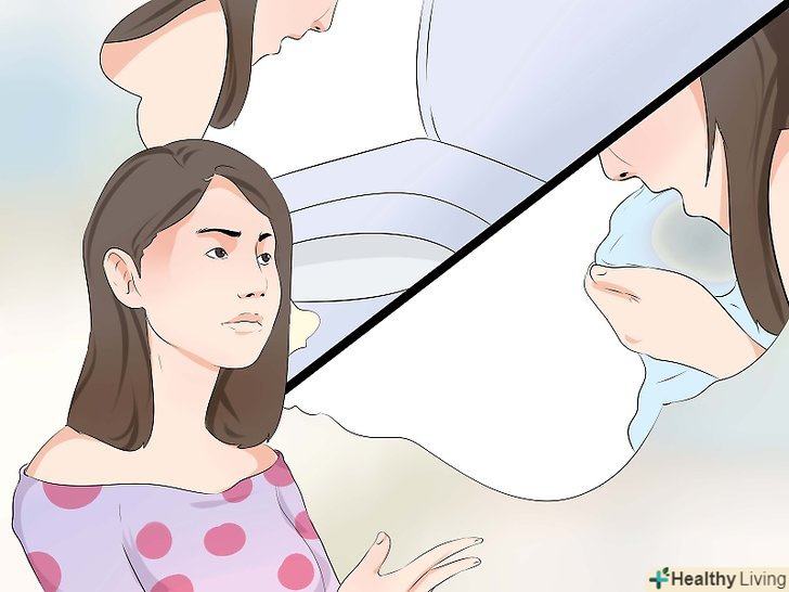 Постарайтеся впоратися з відчуттям нудоти. якщо ви серйозно хворі, у вас харчове отруєння або ви випили занадто багато алкоголю, то, що б ви не робили, блювота все одно почнеться. Якщо ж ви відчуваєте легку нудоту, то можна дещо зробити, щоб впоратися з цим відчуттям і запобігти блювоту. Спробуйте скористатися наступними порадами:[6]- Вийдіть на вулицю і подихайте свіжим повітрям