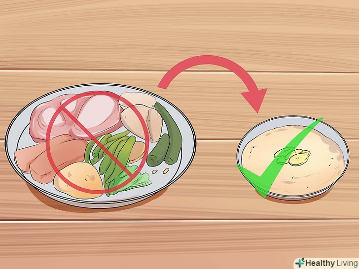 Їжте менше.часто саме переїдання стає причиною нудоти і блювоти. Якщо вас часто нудить або розмір вашого шлунка зменшився, не варто їсти занадто багато і занадто швидко. Це важлива умова для спокійної і стабільної роботи шлунка.[18]- Замість того щоб з'їдати багато їжі за один або два прийоми, Їжте маленькі порції кілька разів на день.[19]