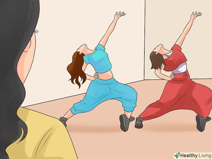 Розвивайте пластичність.танцюристам необхідно бути настільки гнучкими наскільки це можливо, щоб виконувати необхідні танцювальні рухи. Для набуття гнучкості запишіться на заняття йогою або пілатесом. В якості додаткового бонусу ці види фізичної активності збільшать силу хребта, що дозволить вам танцювати ще краще.[11]