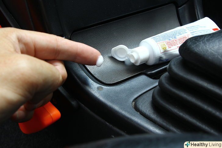 Потріть плями зубною пастою.щоб видалити плями з шкіряних або вінілових сидінь, можна злегка потерти забруднені ділянки зубною пастою.- Завжди перевіряйте той чи інший засіб для чищення на невеликій ділянці. Пам'ятайте, що миючий засіб може негативно вплинути на фарбу.