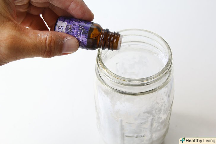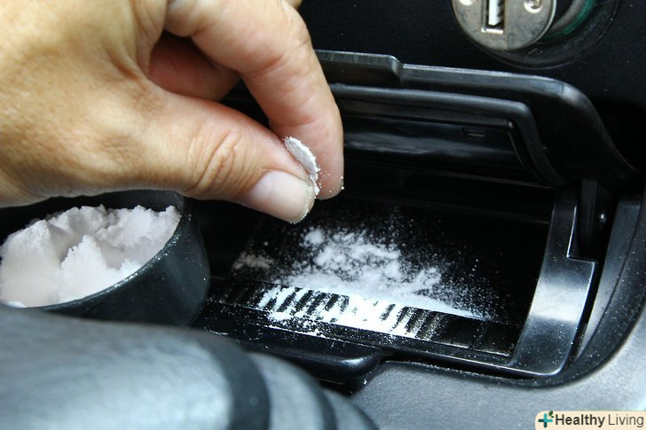 Зробіть освіжувач повітря для автомобіля.насипте в невелику скляну банку 1/4 склянки (60 грамів) харчової соди і виконайте в кришці кілька отворів або закрийте шийку банки марлею. Можна розмістити цю банку в підстаканнику або заховати в кишенях за сидіннями.[14]- Додайте кілька крапель ефірних масел, щоб доповнити освіжаючу дію харчової соди приємним ароматом.