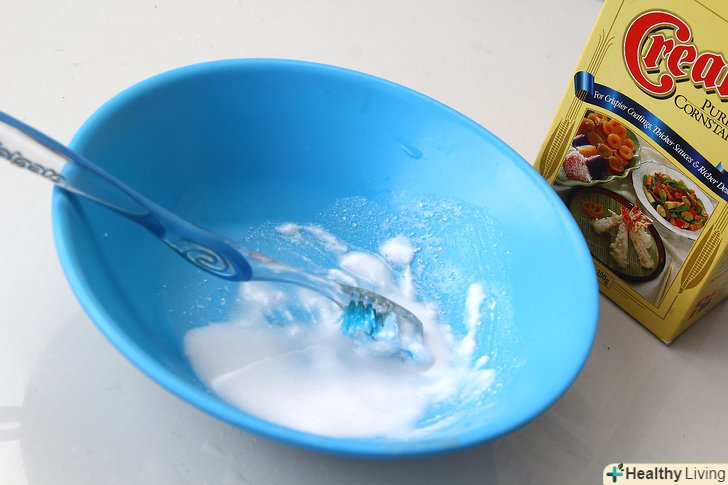 - Деякі експерти рекомендують додати в крохмаль трохи води, щоб вийшла пастоподібна маса. Зачекайте, поки нанесена на пляму паста висохне, після чого витріть залишки пасти і жиру.[9]