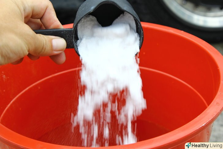 Видаліть сіль і сажу за допомогою харчової соди.щоб приготувати ефективний (особливо в зимовий час) засіб для чищення, розведіть один стакан (230 грамів) харчової соди в 4 літрах гарячої води з милом.