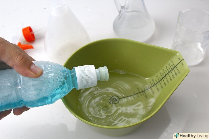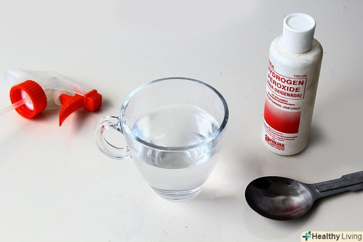 Змішайте в пляшці з розпилювачем один стакан (240 мілілітрів) води і одну столову ложку (15 мілілітрів) перекису водню.злегка струсіть пляшку, щоб рідини як слід перемішалися.