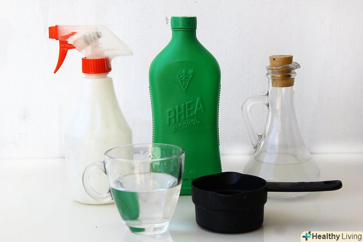 Щоб приготувати домашнє засіб для миття вікон, змішайте склянку (240 мл) води, півсклянки (120 мл) оцту і чверть склянки (60 мл) спирту.можна залити всі інгредієнти в пляшку з розпилювачем і злегка струсити її, щоб вони перемішалися. Після цього чистячий розчин буде готовий до використання.- Можна також очистити скла сумішшю оцту і води, якщо у вас немає спирту.[16]