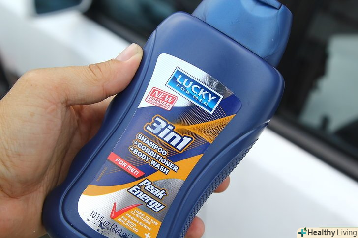 Вимийте автомобіль шампунем для волосся.шампунь є прекрасним побутовим миючим засобом, за допомогою якого можна видалити з автомобіля бруд і жир. Найкраще використовувати дитячий шампунь, так як його м'які інгредієнти не зашкодять автомобільну фарбу.[4]