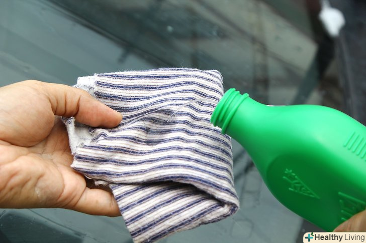 Видаліть складні плями від комах нерозбавленим оцтом.обприскати вікно або Вітрове скло автомобіля оцтом і просто протріть його. Якщо пляма важко виводиться, почекайте, поки оцет вбереться в нього, а потім витріть скло.- Є свідчення того, що газована вода також допомагає вивести плями від комах, якщо змочити нею скло і залишити на кілька хвилин.[17]
