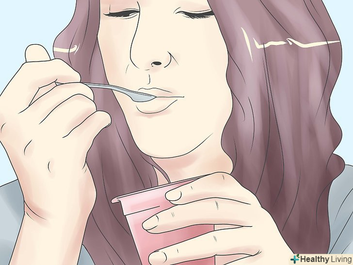 Випийте трохи йогурту.до більшості молочних продуктів під час нудоти ставляться з несхваленням. Тим не менш, йогурт з активними культурами допомагає вашому шлунку підтримувати хороші бактерії, необхідні для боротьби з поганими бактеріями. Тому знайдіть звичайний йогурт, який містить пробіотики, і ваш шлунок відновить сили з найкоротші терміни.