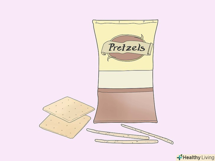 З'їжте трохи крекерів.коли нічого не допомагає, прості крекери, як правило, справляються з нудотою. У них м'який смак і вони легко засвоюються, що робить їх чудовою їжею при нудоті. Якщо ви зможете подужати крекери, спробуйте просунутися до кренделів, у яких більш висока поживна цінність.